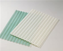 FRP浪(平)板是由樹脂及玻璃纖維所疊置而成,為複合材料之一種,其較塑膠材質(PC或PVC)具有更好的強度特性,並且,其具有良好的透光性,可作為屋頂的採光板加以使用,可達到室內白天不點燈的節能功效。